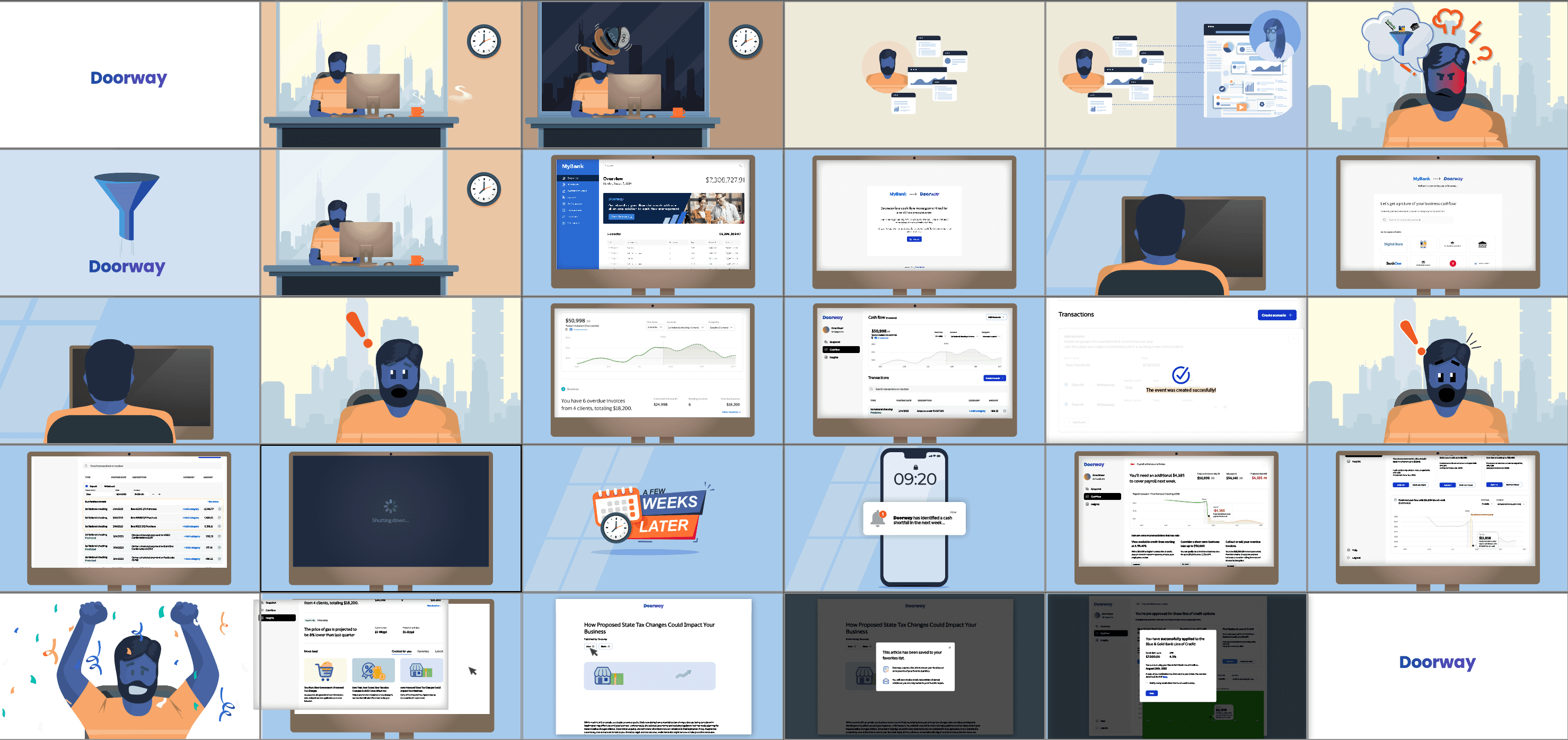 Doorway is an embedded banking platform for small and medium businesses — unified financial data inside existing bank offerings. Complex concept. We made it simple through Dan, a manufacturing business owner facing a cash flow crisis days before payday.