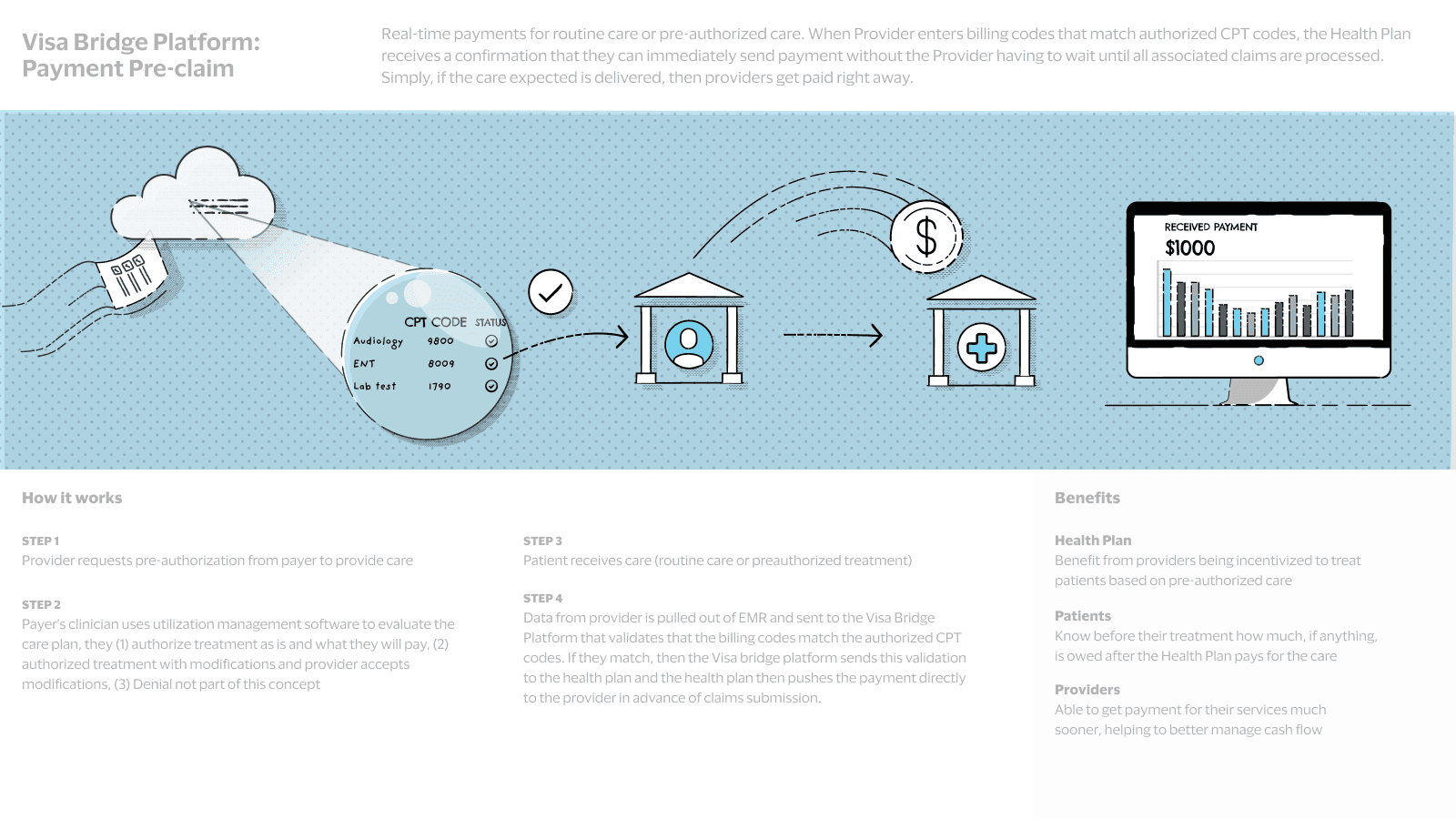 Real-time payments for routine and pre-authorized care.