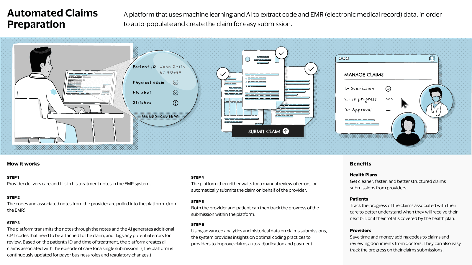 ML/AI platform extracting EMR data to auto-populate claims.
