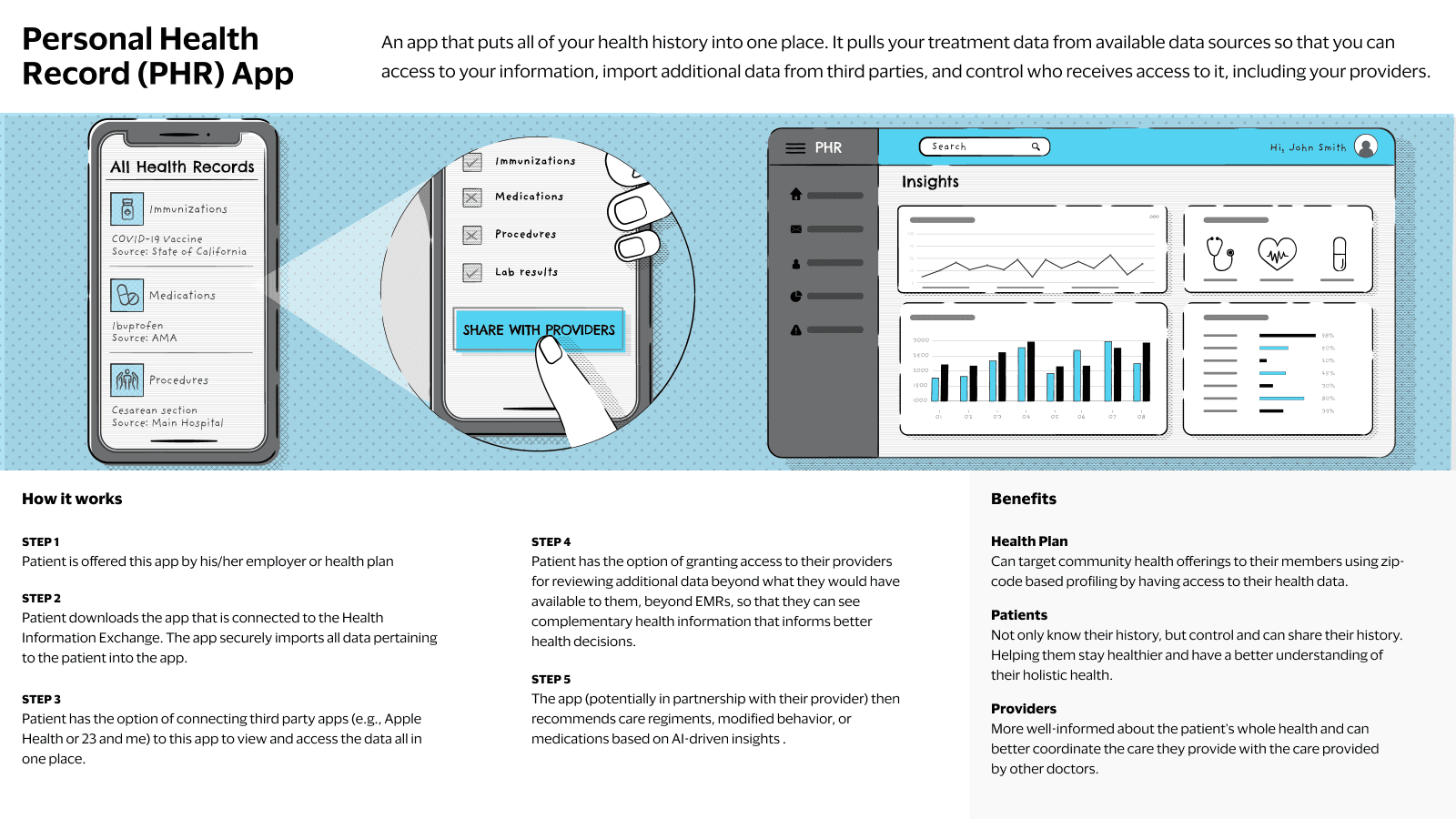 Centralized app for all patient health history.